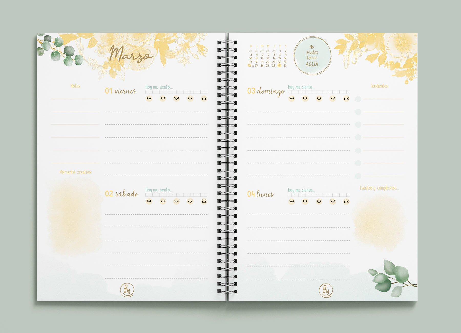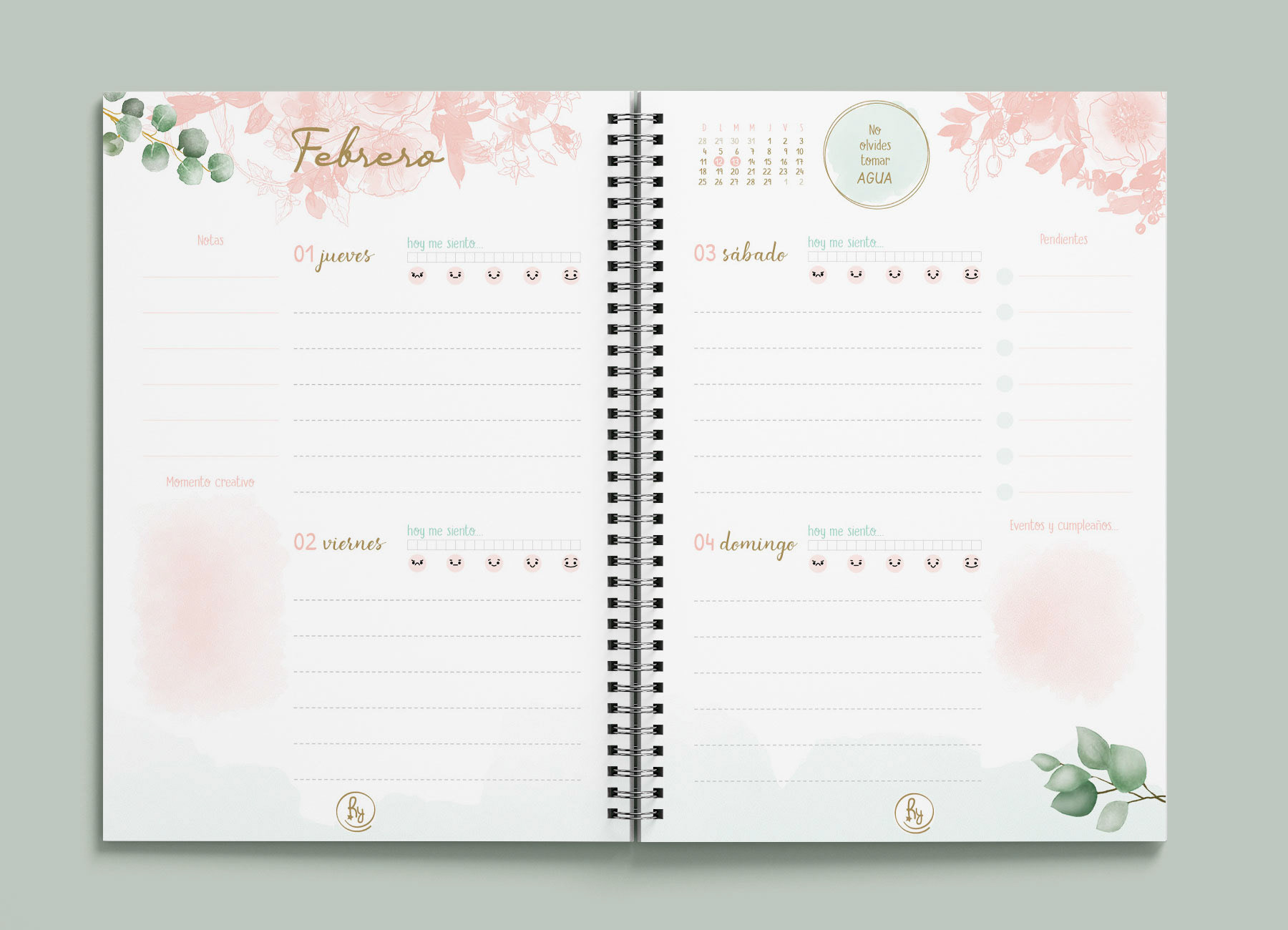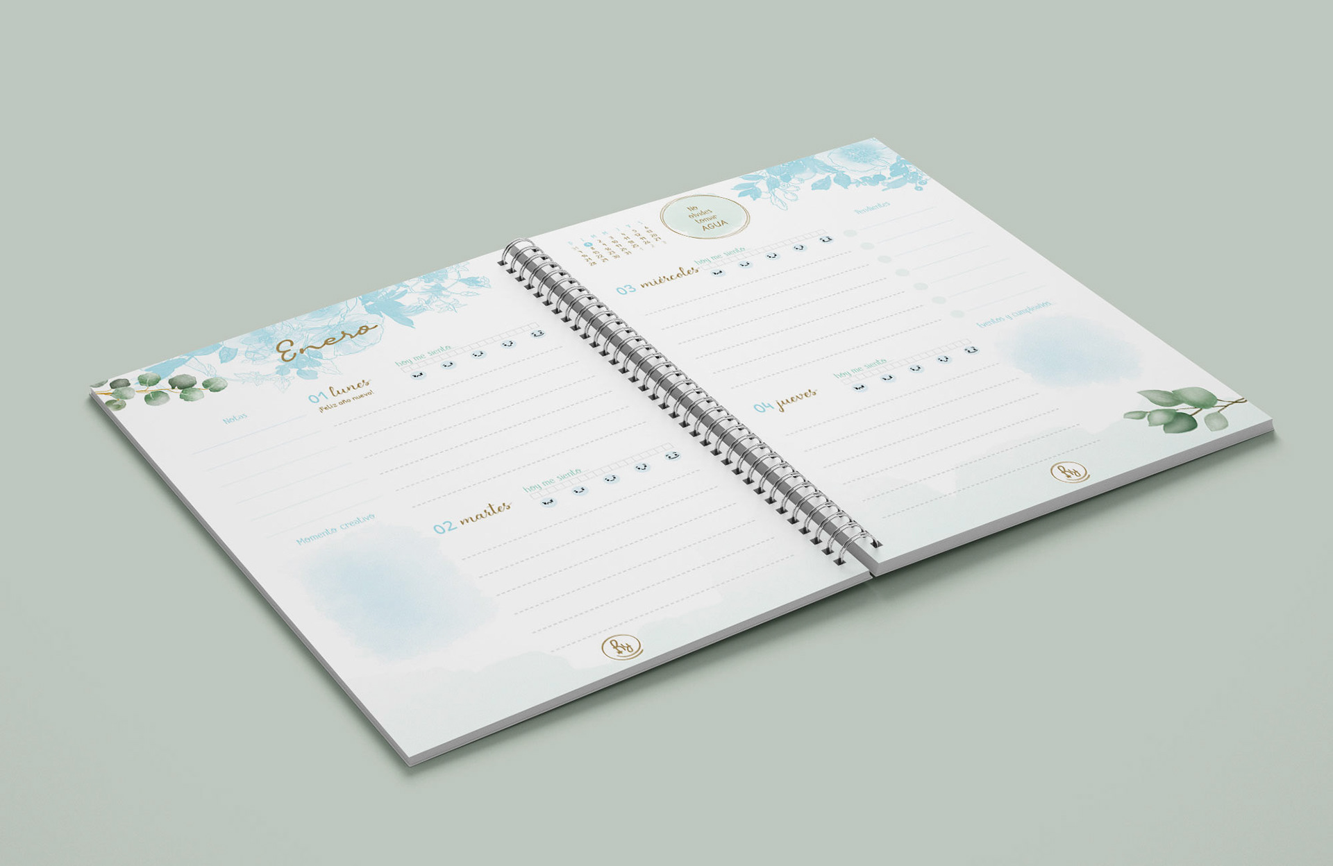 Proyecto: Agenda del catálogo Eco chic. Formato dos días por página y también semana a la vista tamaño pocket.