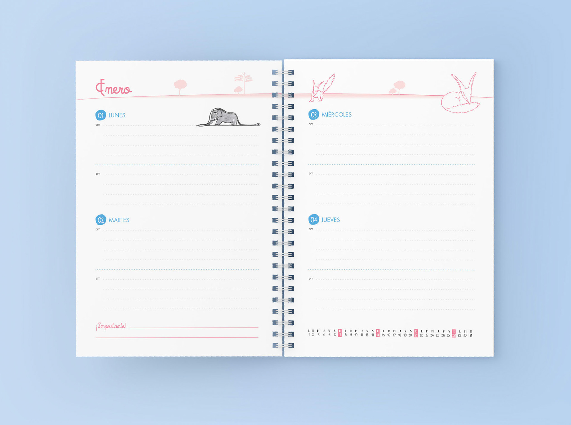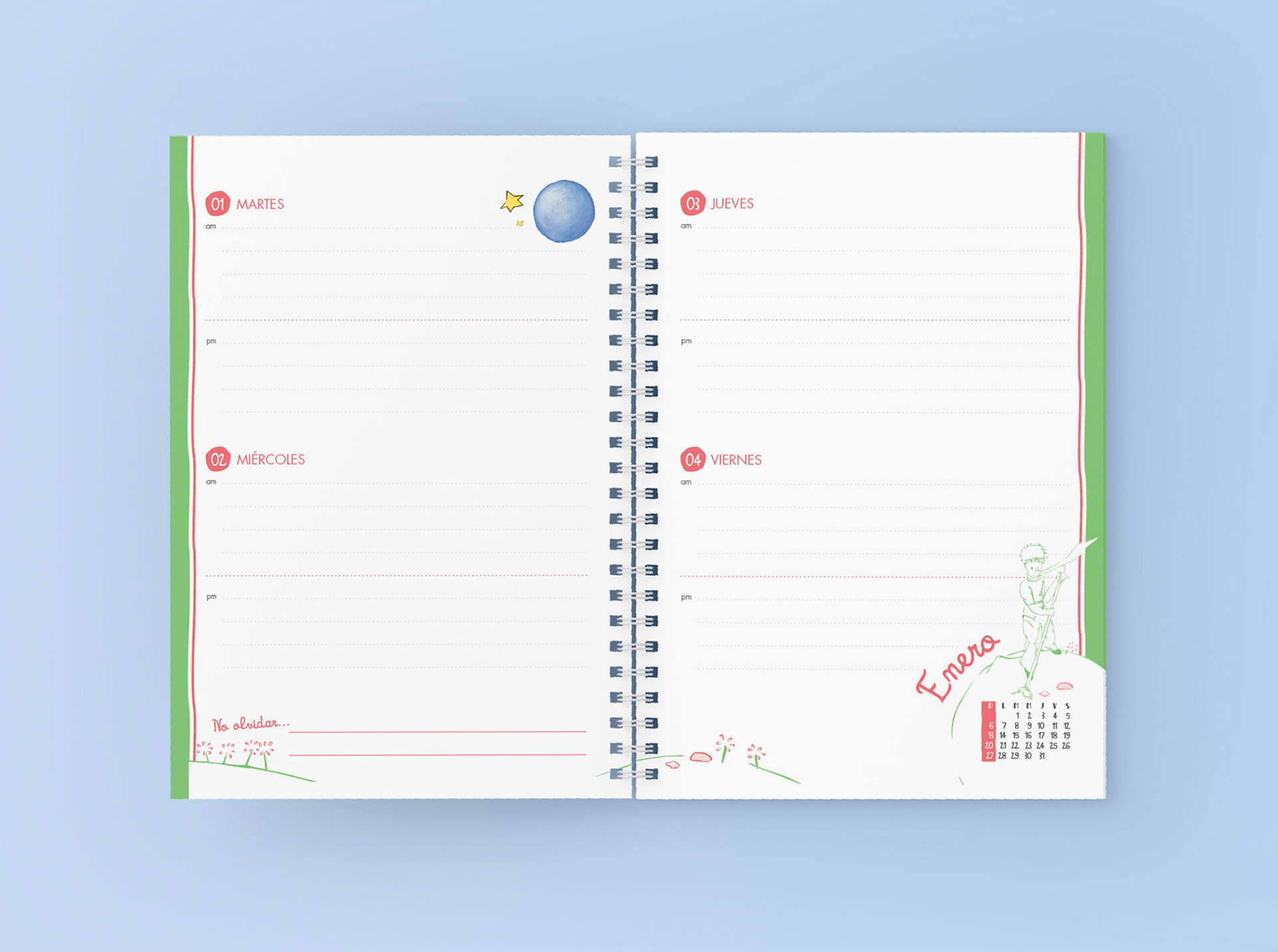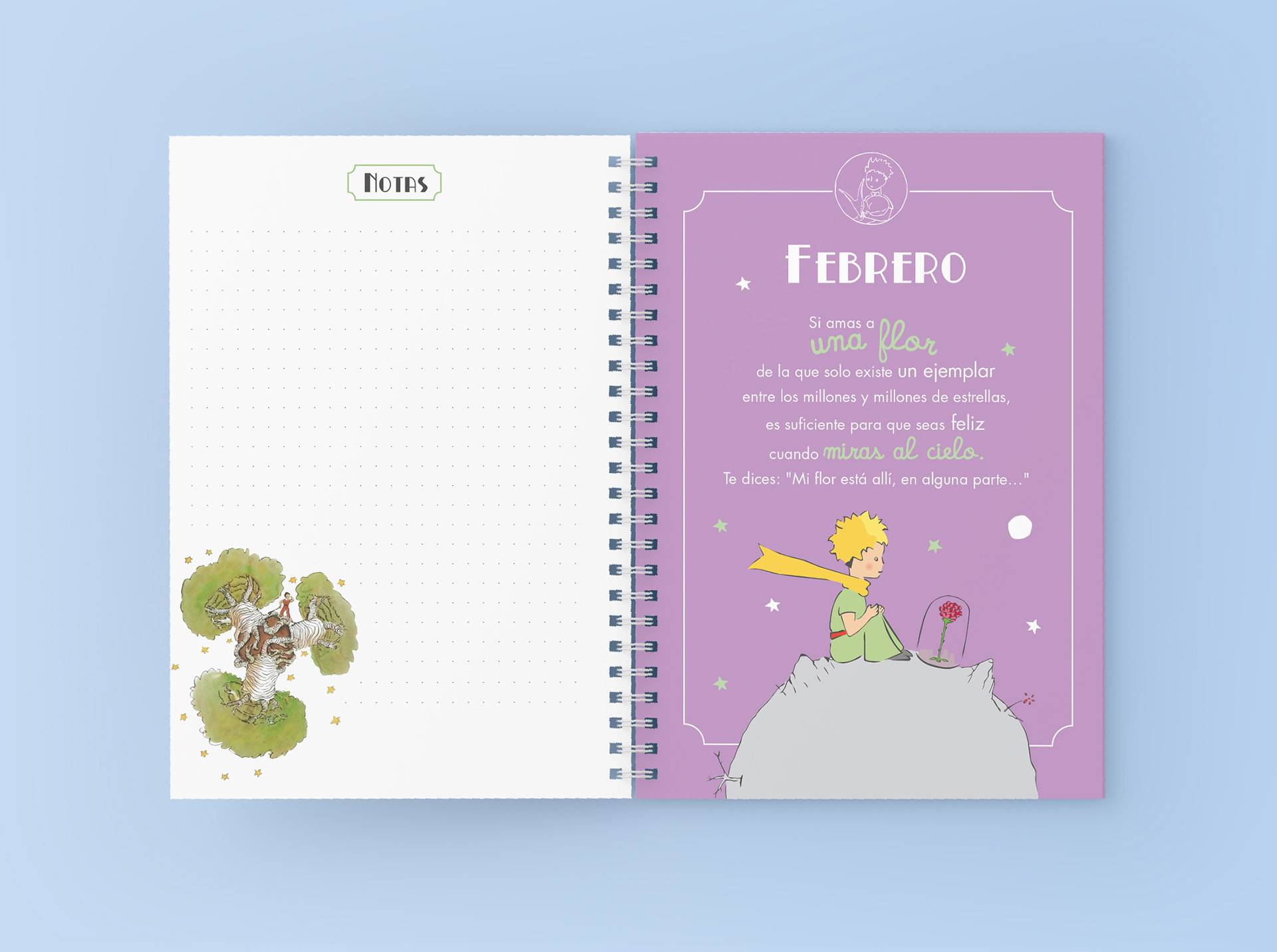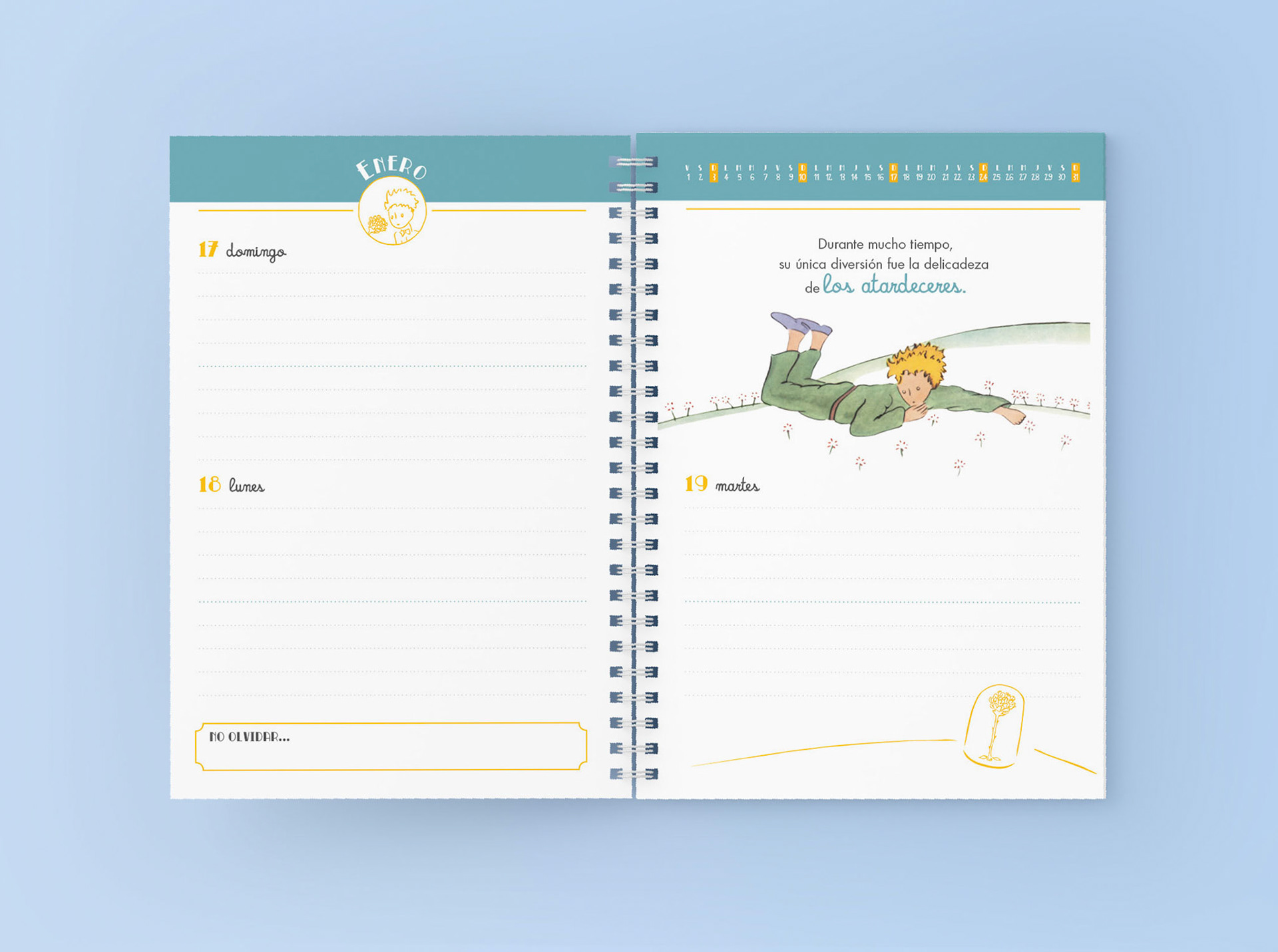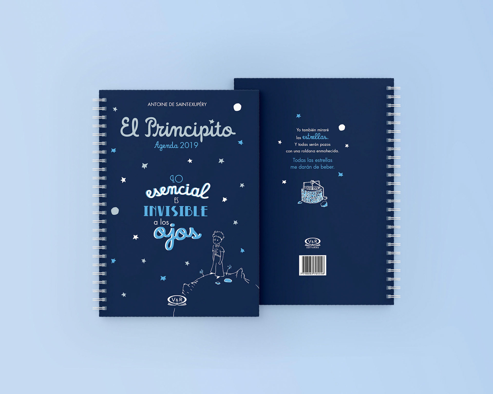 Proyecto: Agenda El Principito (2017 / 2018 /2019 / 2021). Diseño de interior y tapa para cada edición.