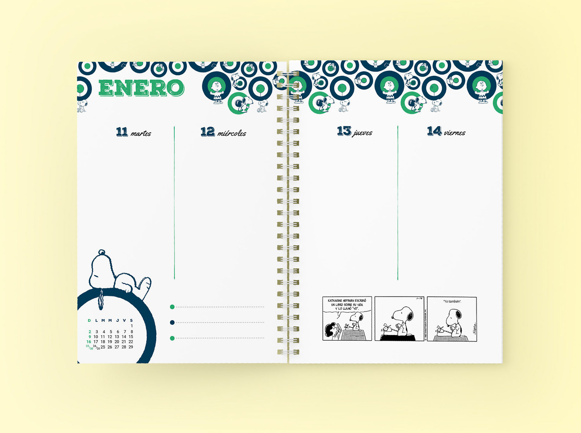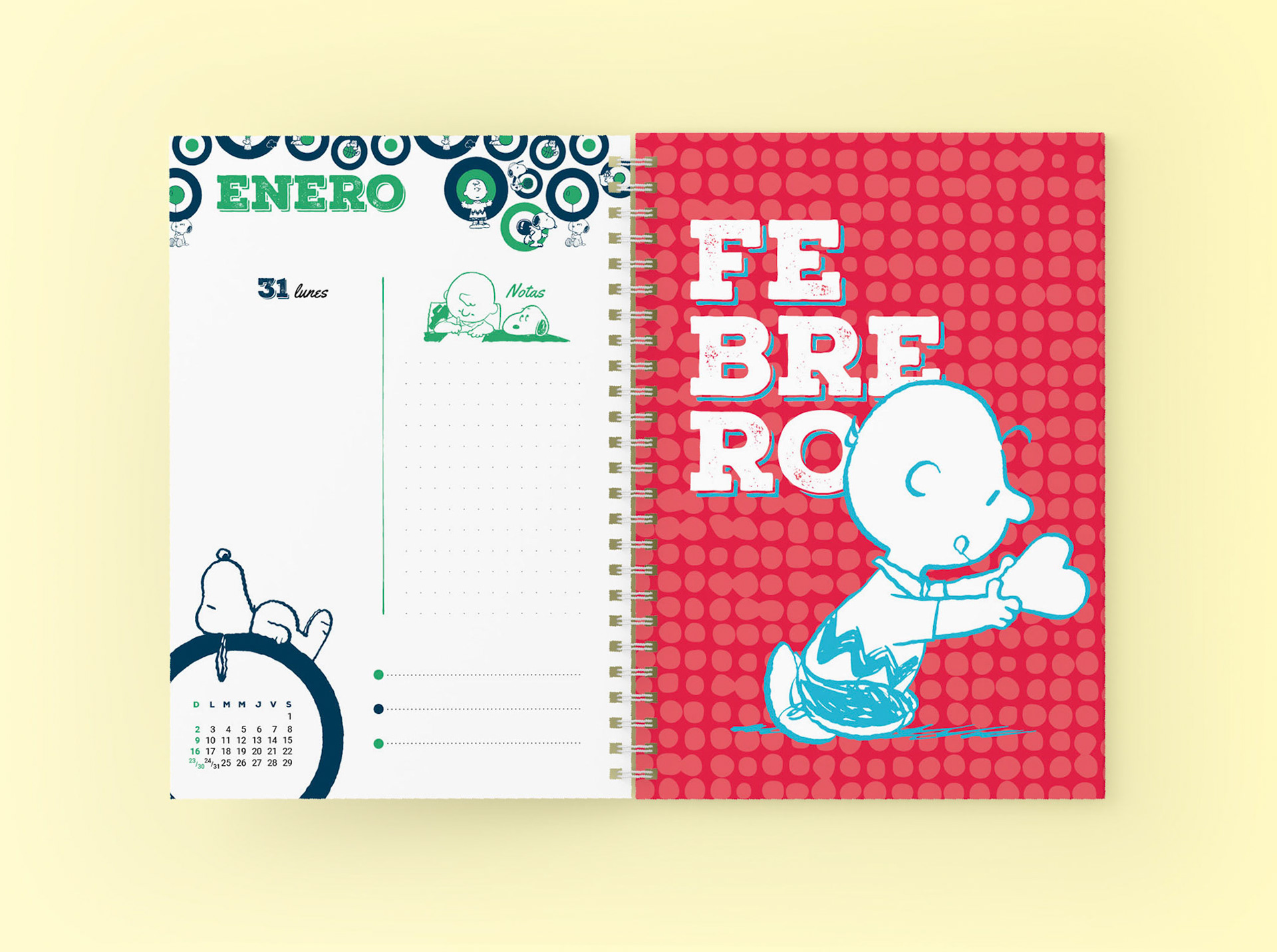 Proyecto: Agenda Snoopy (2020 / 2021 /2022). Diseño de interior y dos tapas para cada edición.