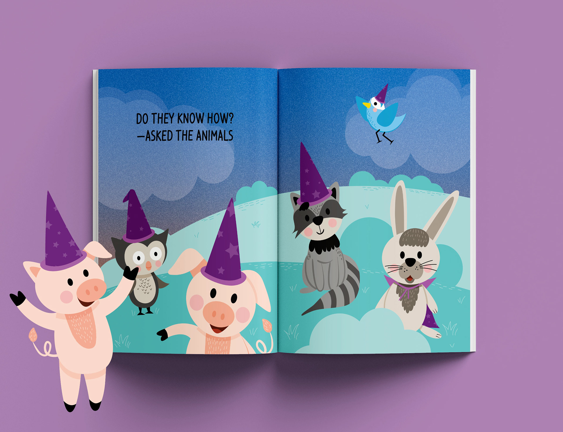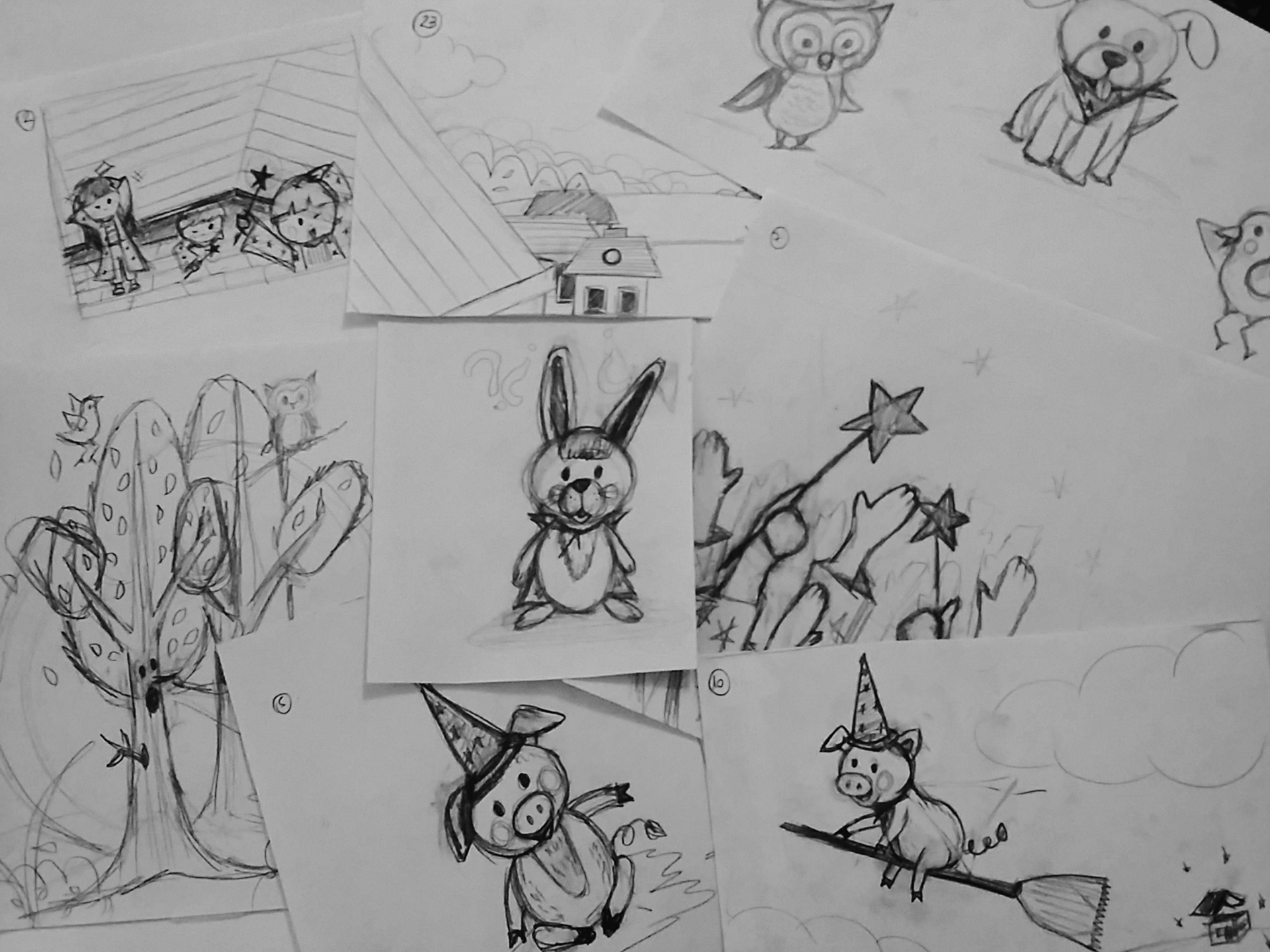 Proyecto: The magical roof. Ilustración de 36 páginas en total de esta hermosa historia sobre unos pequeños magos y animales mágicos.