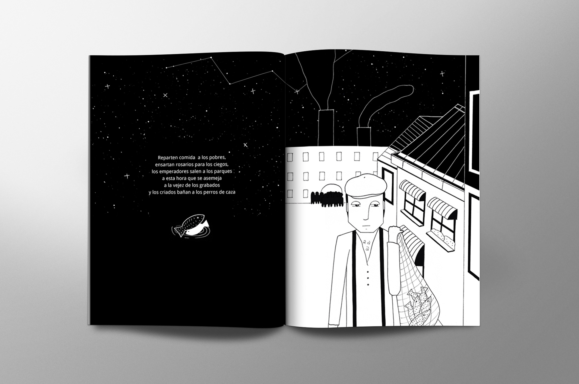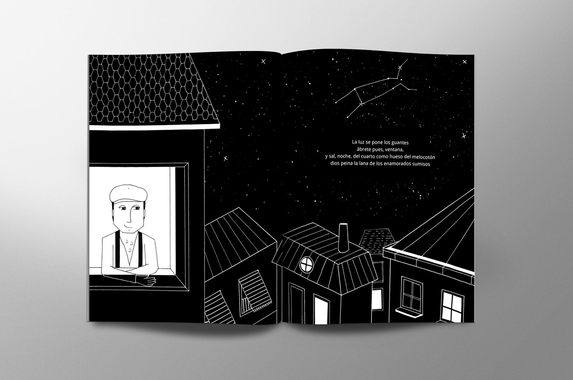 Libro ilustrado del poema Anochece de Tristan Tzara
