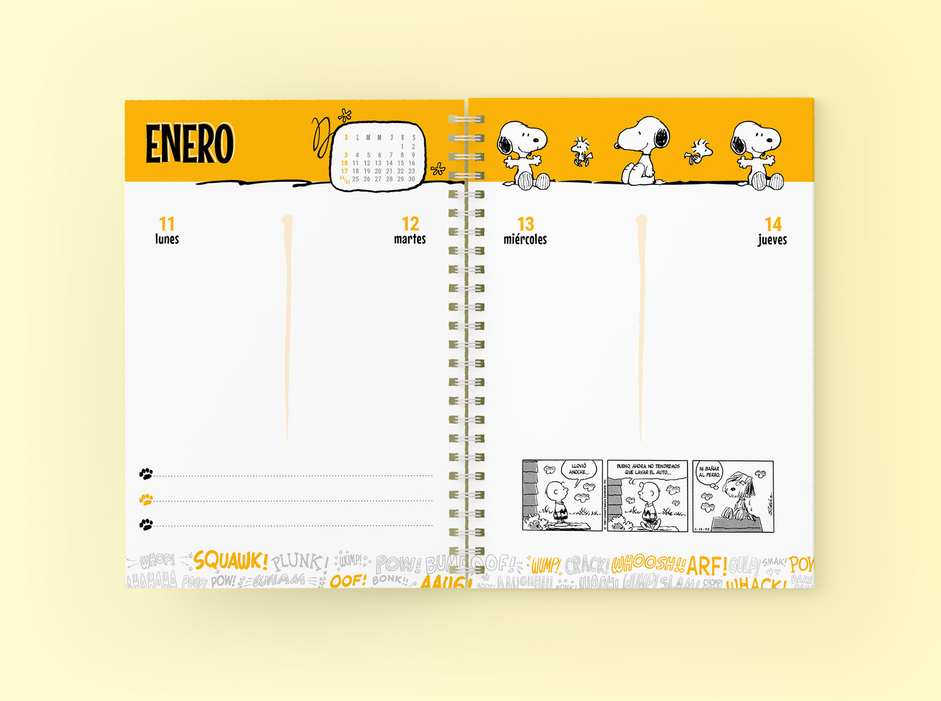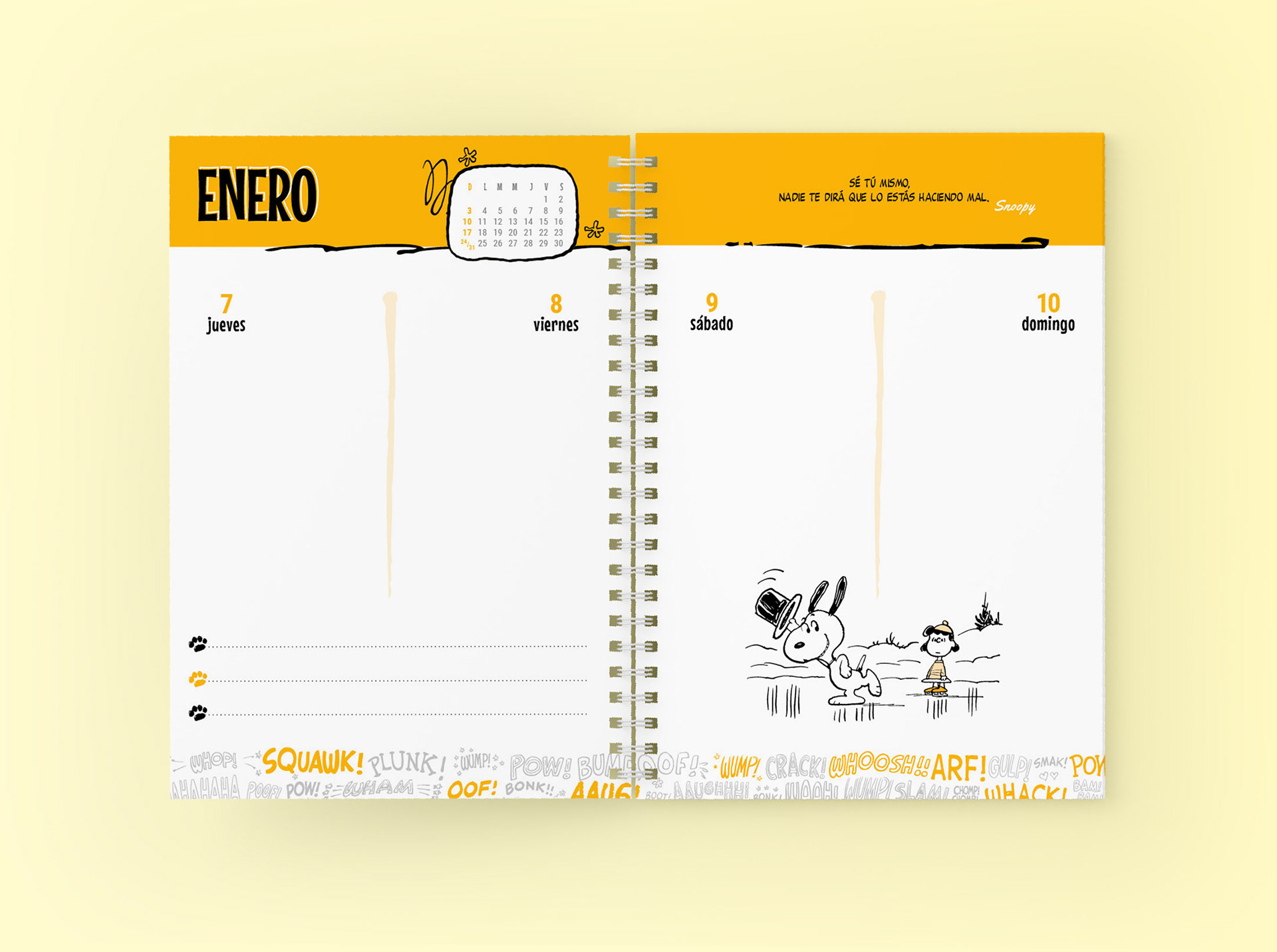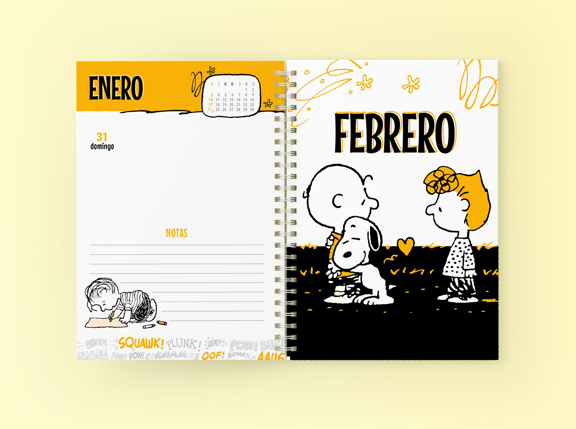 Proyecto: Agenda Snoopy 2021. Diseño de interior y dos tapas.