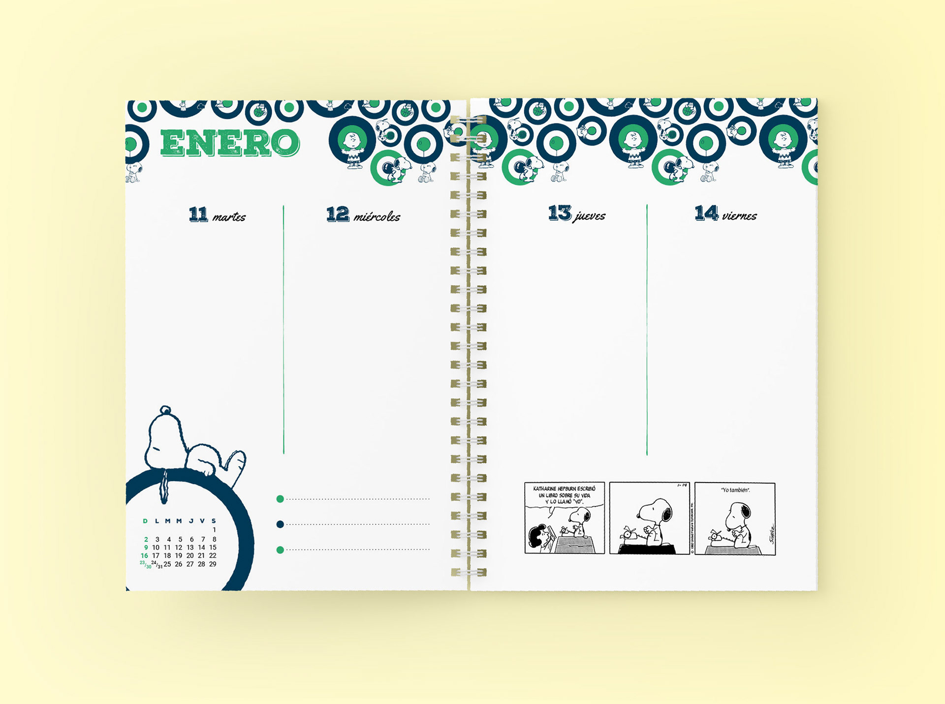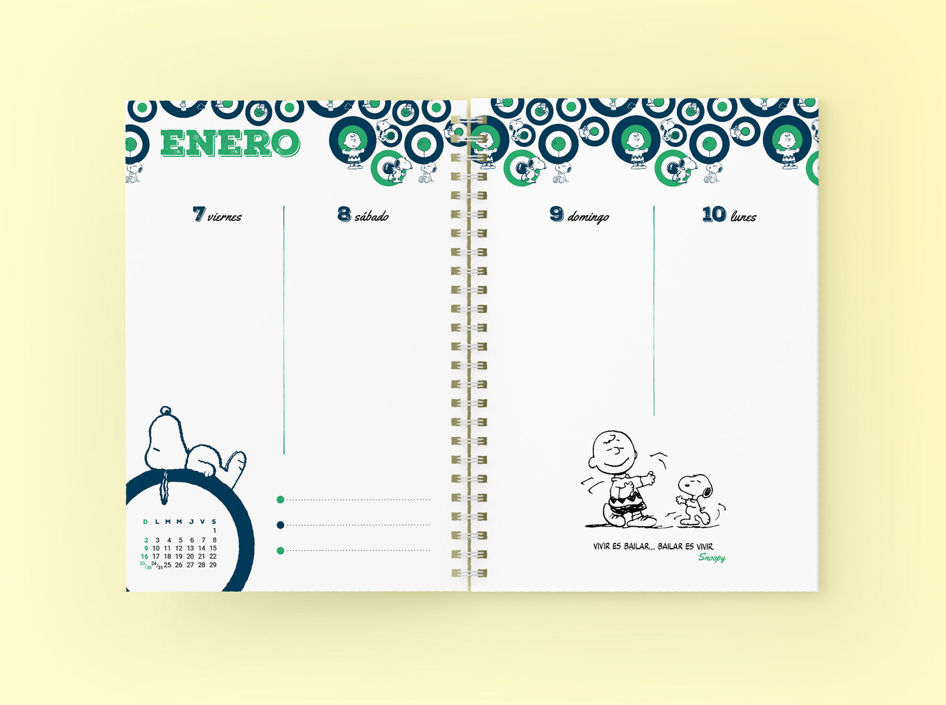 Proyecto: Agenda Snoopy 2022. Diseño de interior y dos tapas.