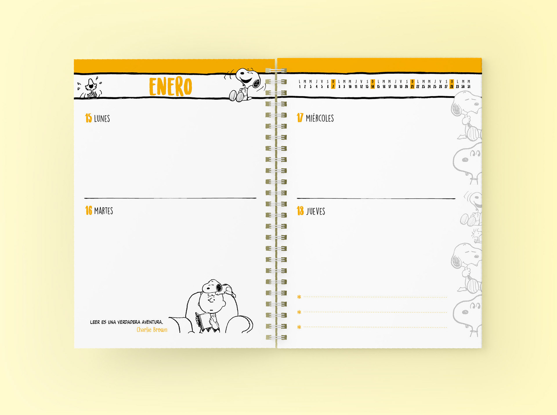 Proyecto: Agenda Snoopy 2024. Diseño de interior y dos tapas.